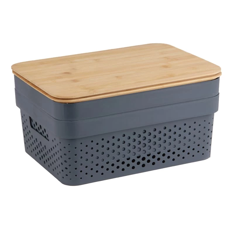 2-Pack Grey Plastic Storage Container With Bamboo Lid, Medium