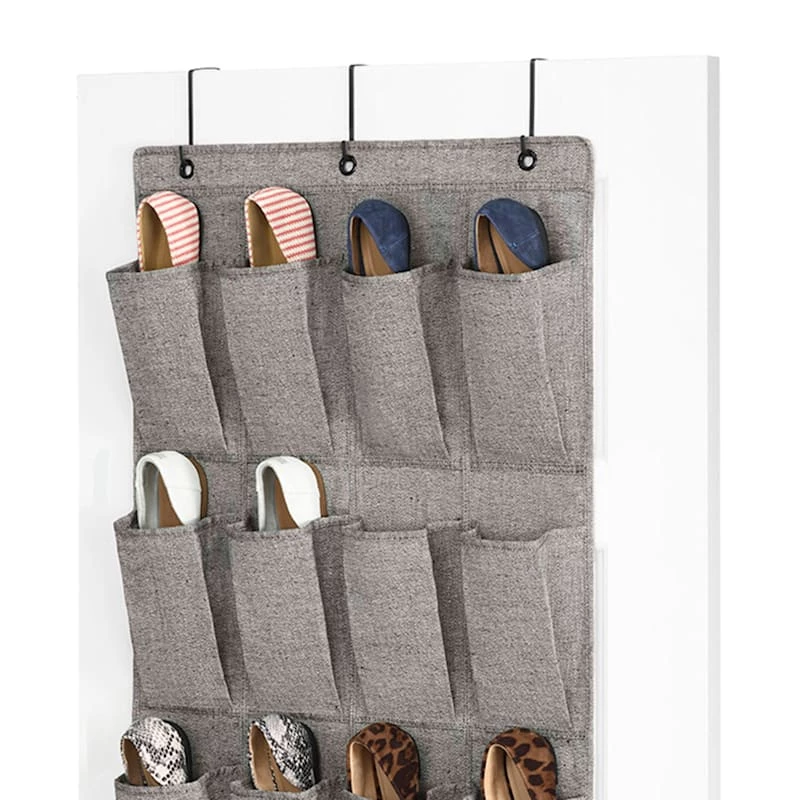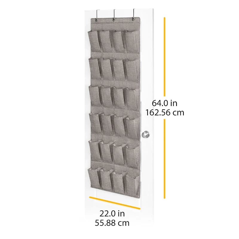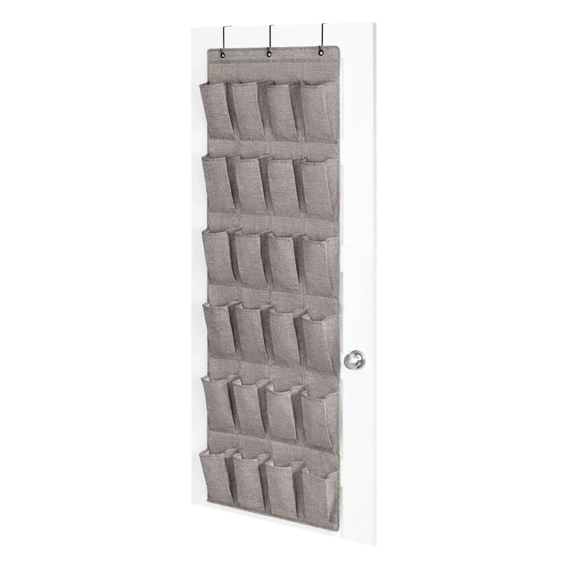 24-Pocket Over The Door Shoe Bag, Black Herringbone
