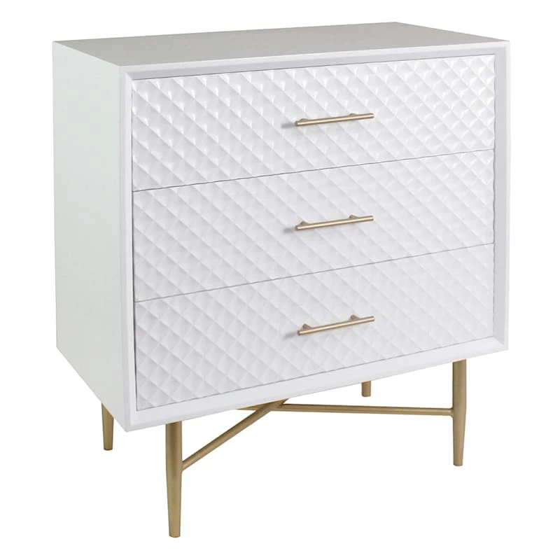 3-Drawer White & Gold Cabinet