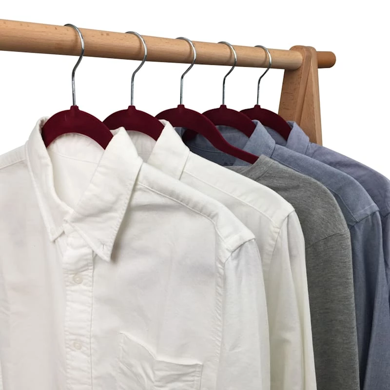 Fear not, fabulous fashionistas! We have the perfect solution to your crowded closets. This fuchsia velvet hanger pack of 50 features non-slip flocking—so no more clothes sliding off the hangers and onto the floor! And the ultra-slim design means more space in your closet, too!