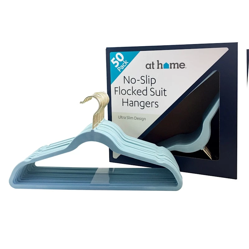 Fear not, fabulous fashionistas! We have the perfect solution to your crowded closets. This pastel blue velvet hanger pack of 50 features non-slip flocking—so no more clothes sliding off the hangers and onto the floor! And the ultra-slim design means more space in your closet, too!