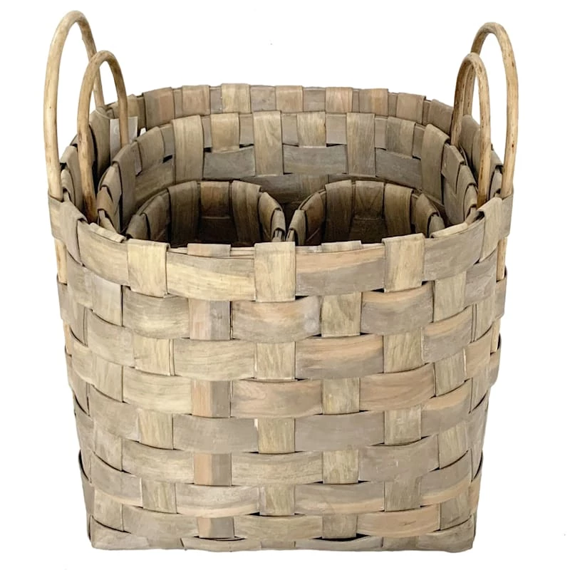 Grey Wash Chip Wood Basket