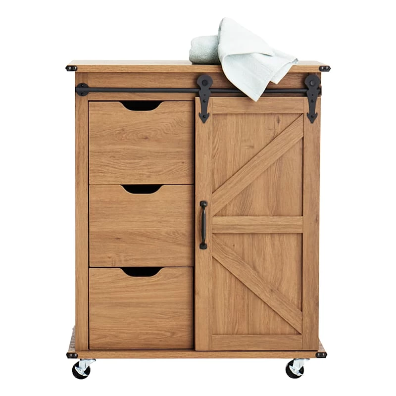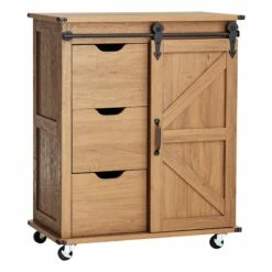 Honeybloom 3-Drawer Jacob Sliding Barn Door Cabinet, Brown