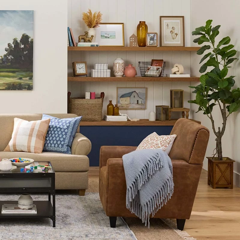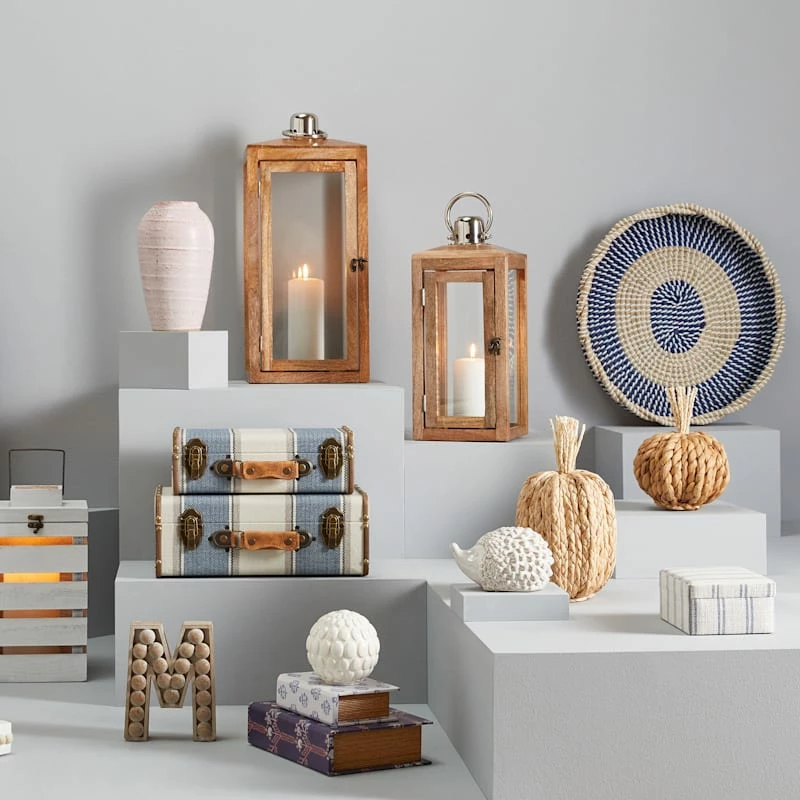 Modern farmhouse meets At Home prices in Honeybloom, our exclusive new brand that celebrates life lived together. Our 6x5in. Ivory and blue striped decorative box is a perfect filler box or storage box. This faux wood and fabric lining from the inside and outside the box is great to store any delicate items you want to hide from your guest. Stack this with other similar boxes or alone on a shelf or table to bring out your inner interior designer.