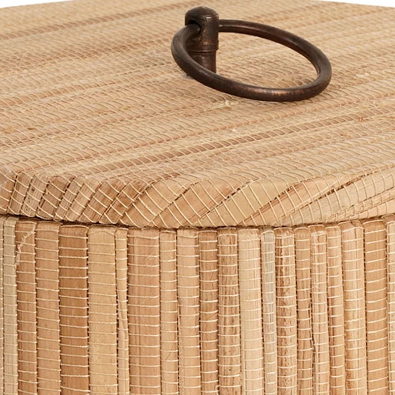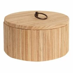 Modern farmhouse meets At Home prices in Honeybloom, our exclusive new brand that celebrates life lived together. Our brown 8in. Round woven box is prefect for any modern home. If you are trying to bring in more wood work into your home then this is the item for you. Have this delicate wood work with metal ring to have easy access to open this rounded box. Looks perfect in any shelf or table you set it on and you can store any necessary items you may need to hide to keep out of reach until needed.