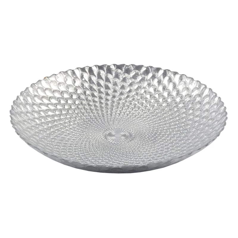 Laila Ali brings the mindset of a world-champion athlete and passion for healthy living to create a modern lifestyle collection with serious style found only At Home. This contemporary table decor is an easy way to add a pop of charm to any room. Bring new life to your dining room, kitchen or den with this interesting 16in. round silver scaled glass bowl. This piece will bring years of enjoyment and add to your modern aesthetic.