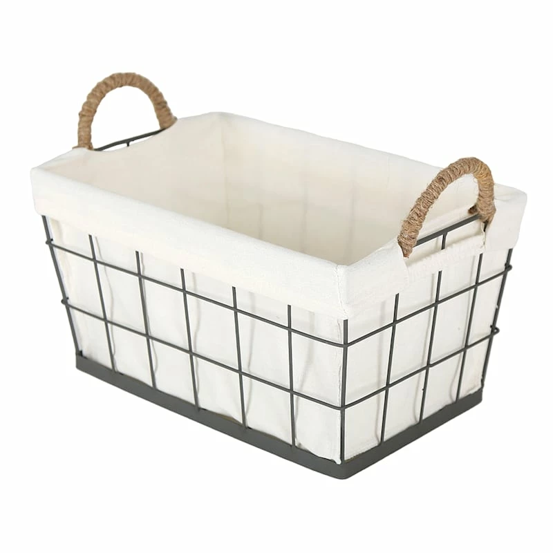 Lined Rectangle Wire Storage Basket, Large