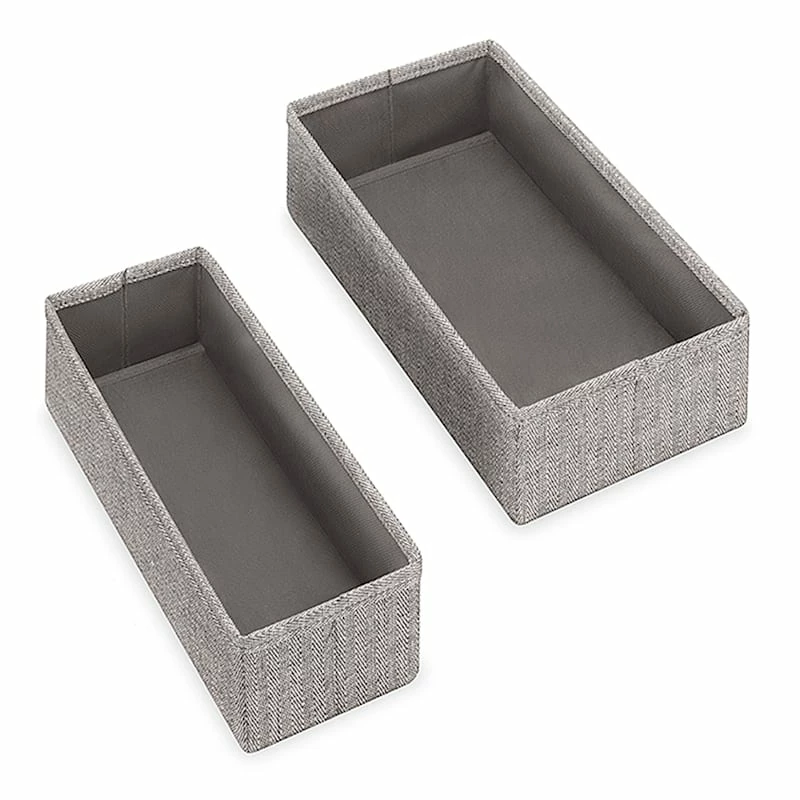 Set Of 4 Fabric Drawer Organizers, Black Herringbone