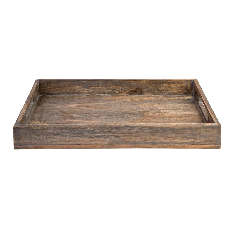 A jack-of-all-trades, including graphic designer, carpenter, contractor, author and beloved reality TV host, Ty Pennington has created a new and exclusive collection for At Home. Add a simple pop of personality to your table or counter with this charming, weathered grey wash wood tray with handles. The open, square shape is practical for displaying or serving.
