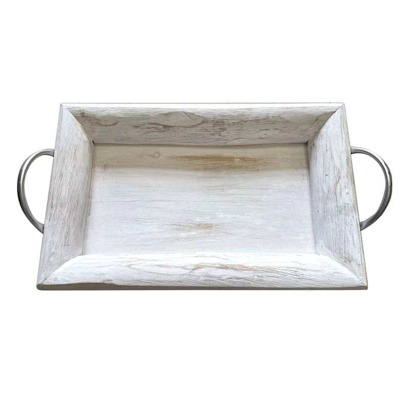 A jack-of-all-trades, including graphic designer, carpenter, contractor, author and beloved reality TV host, Ty Pennington has created a new and exclusive collection for At Home. Add a simple pop of personality to your table or counter with this charming, weathered white wood tray with handles. The open, square shape is practical for displaying or serving.