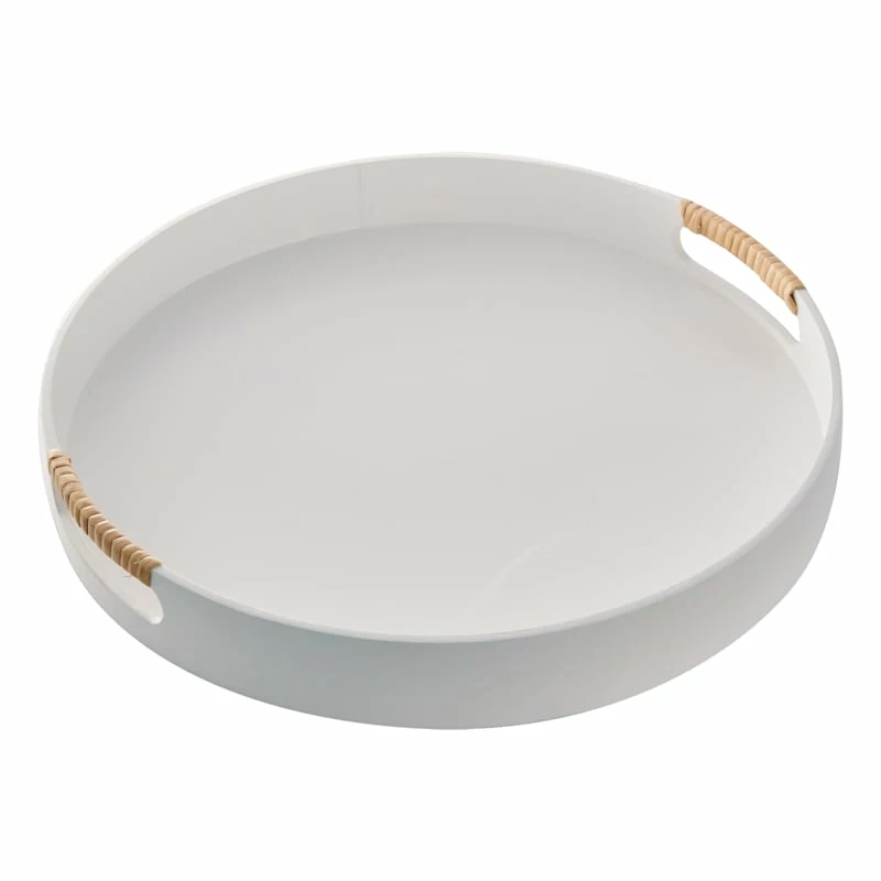 A jack-of-all-trades, including graphic designer, carpenter, contractor, author and beloved reality TV host, Ty Pennington has created a new and exclusive collection for At Home. Add a simple pop of personality to your table or counter with this charming, white wood tray set. Their low, rounded shape is practical for displaying or serving.